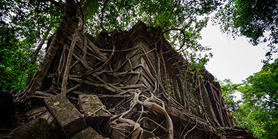 Cloaked in vegetation and with few concessions to tourism; this temple looks like it would have done had the early French explorers found it. Once you get closer the high walls, the ancient Khmer Architecture reveals itself.